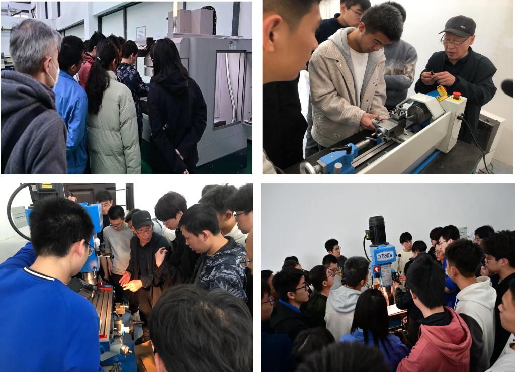 本次培训由池州市豪迈数控机床有限公司张俊和张海明工程师进行教授,工程训练中心部分教师及双创实践平台的学生参加了此次活动。工程师首先向培训人员讲解了小型车床、铣床及加工中心等多种设备的结构原理,并现场演示了每种设备的操作步骤。在培训中,师生学习了这些设备的各种功能、使用方法和安全操作规程。通过理论授课和实际操作相结合的方式,参加培训的人员深入了解了每个设备的使用特点及应用场景,熟悉了多种加工设备的操作。