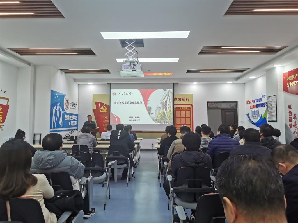 首先,会议传达了中北大学党委常委会扩大会议暨持续深入开展安全隐患排查整治工作会议精神,要求大家吸取吕梁永聚煤业有限公司联建楼火灾事故教训,强化火灾隐患的排查整治,对自己负责,对师生负责,对家庭负责,维护好学校的安全稳定。随后,高书记从实验室安全责任体系、实验室安全管理制度、实验室安全教育培训宣传、实验室安全教学科研活动安全准入制度、实验室安全条件保障、实验室危险化学品安全管理等方面详细解读了《高等学校实验室安全规范》和《高等学校实验室安全检查项目表》。最后,高书记结合自己工作经历,分享实验室安全管理经验。他强调要建立健全安全管理机制,强化隐患排查整治,全面提高火灾防控能力,确保校园安全稳定。
