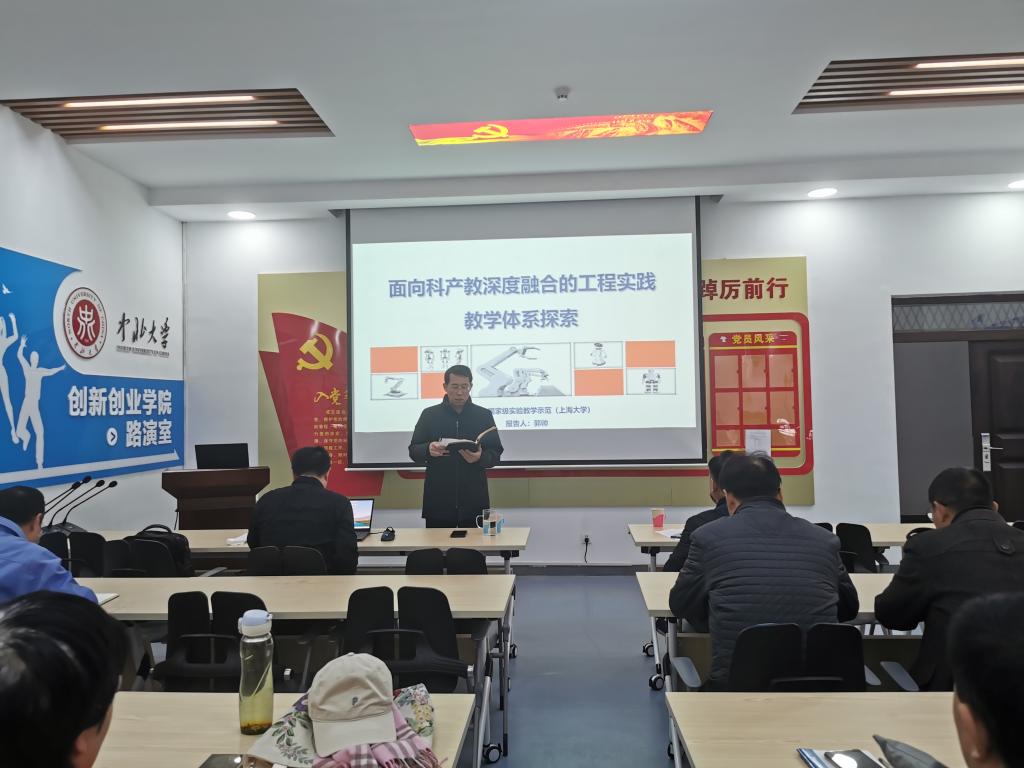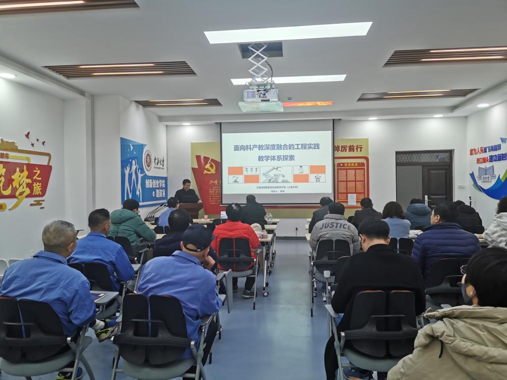 教职工作了题为《面向科产教深度融合的工程实践教学体系探索》的专题报告。报告由我校工程训练中心副主任冯再新教授主持,学院40余名教职工听取了报告并参与交流讨论。