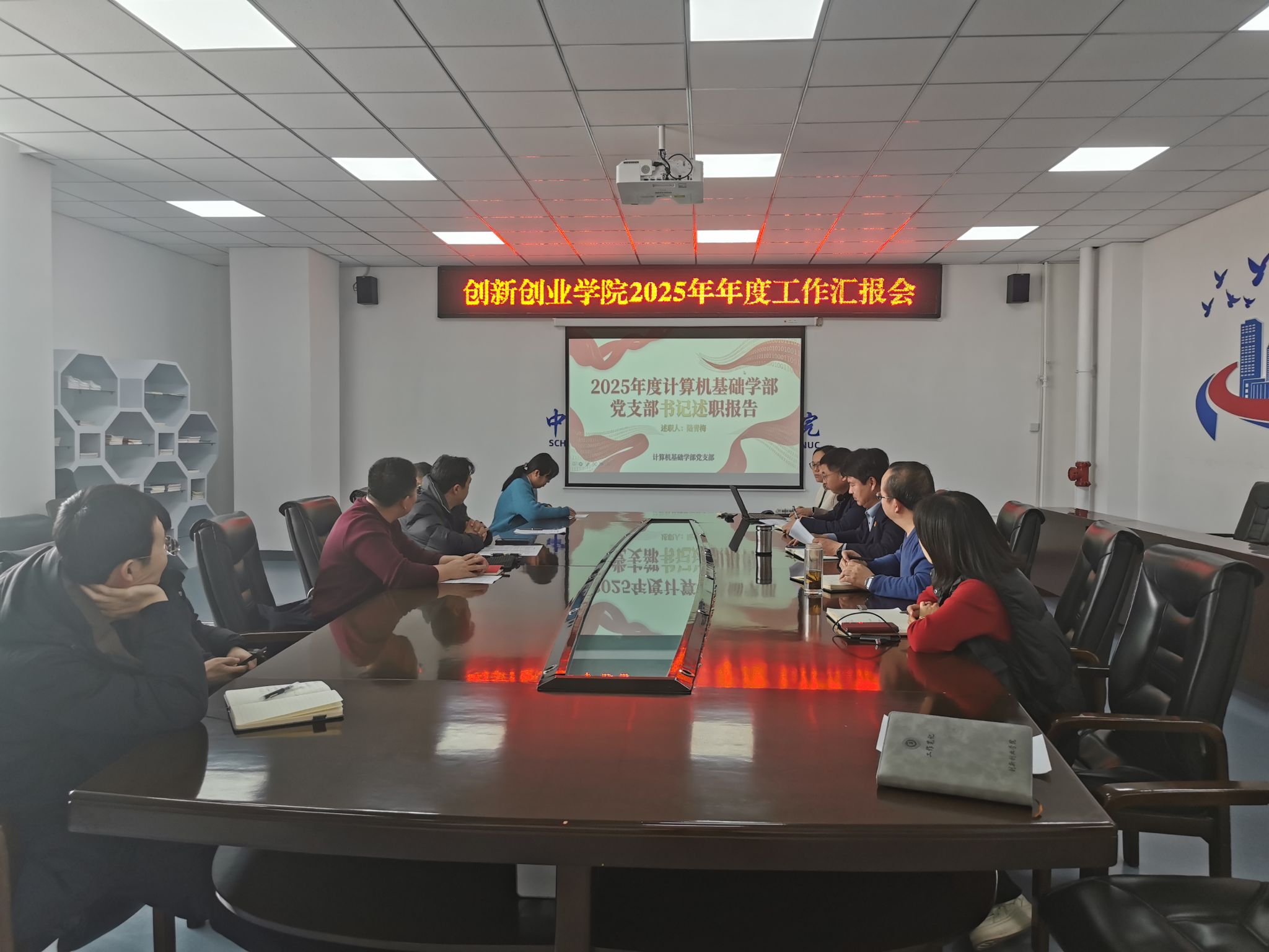 近日在学院会议室召开2025年度工作汇报会。学院党政领导班子全体成员、各教学部负责人、党支部书记及科室负责人齐聚一堂,共商发展大计。会议由学院党总支书记高春强主持。