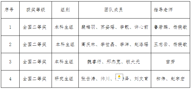 裴梅羽、高庆林、魏睿行以及张云涛四支队伍分别分别以作品《大型轧钢机轴承的热处理工艺设计》、《高速钢齿轮滚刀表面强化的热处理工艺设计》、《大型渗碳齿轮的选材与热处理工艺》和《耐腐蚀滚动轴承热处理工艺》荣获大赛二等奖。