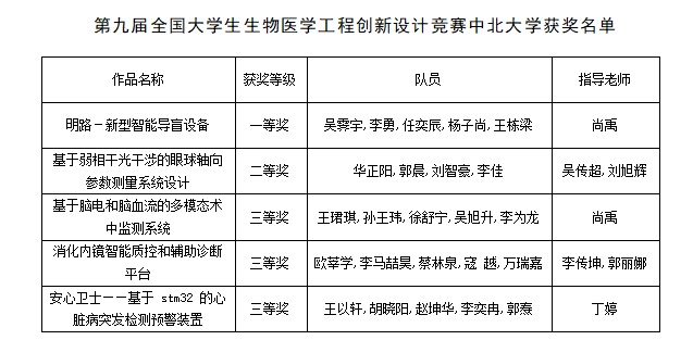 喜讯!我校学子在第九届全国大学生生物医学工程创新设计竞赛中获佳绩